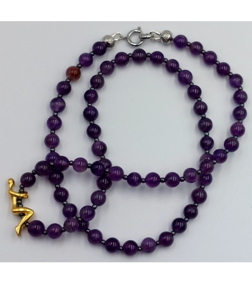 Joli collier en pierre naturel améthyste 6mm avec hématite gris foncé 1mm